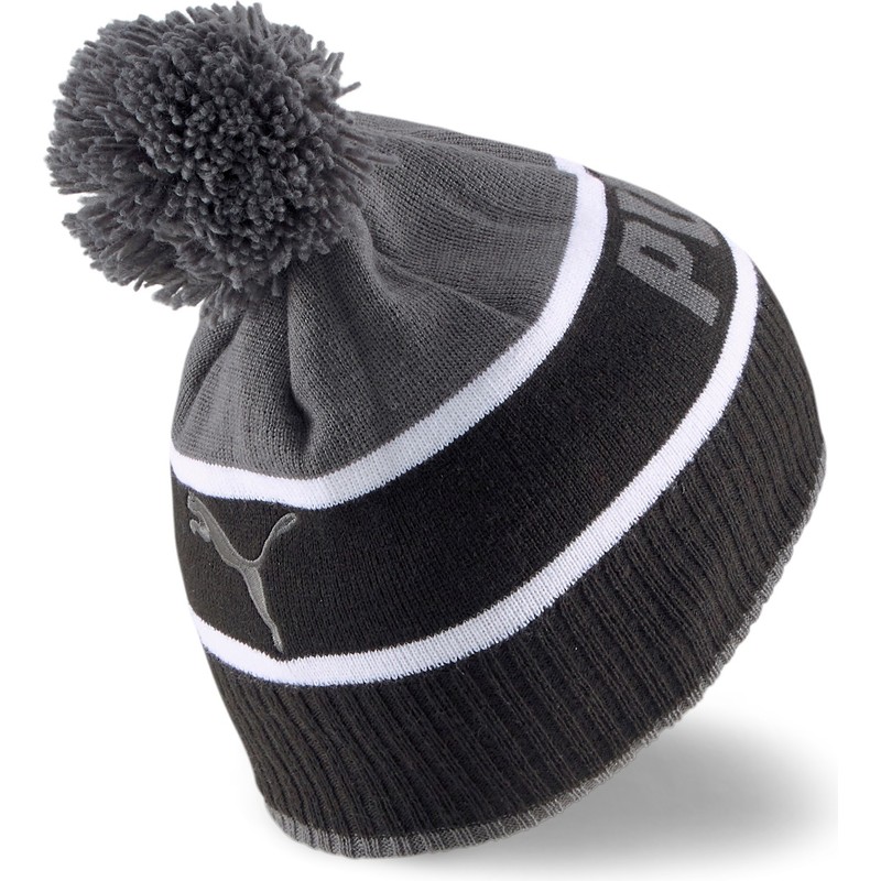 Berretto nero e grigio con pompon di Puma