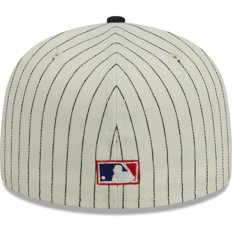 Cappello piatto beige e blu navy aderente 59FIFTY Retro Script dei New York Yankees MLB di New Era