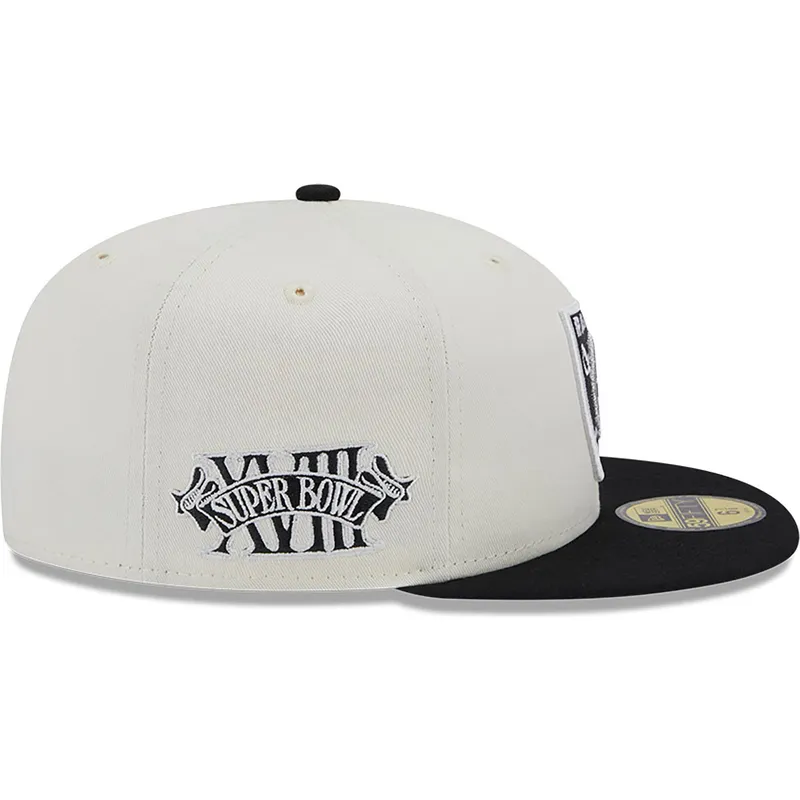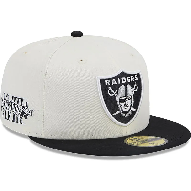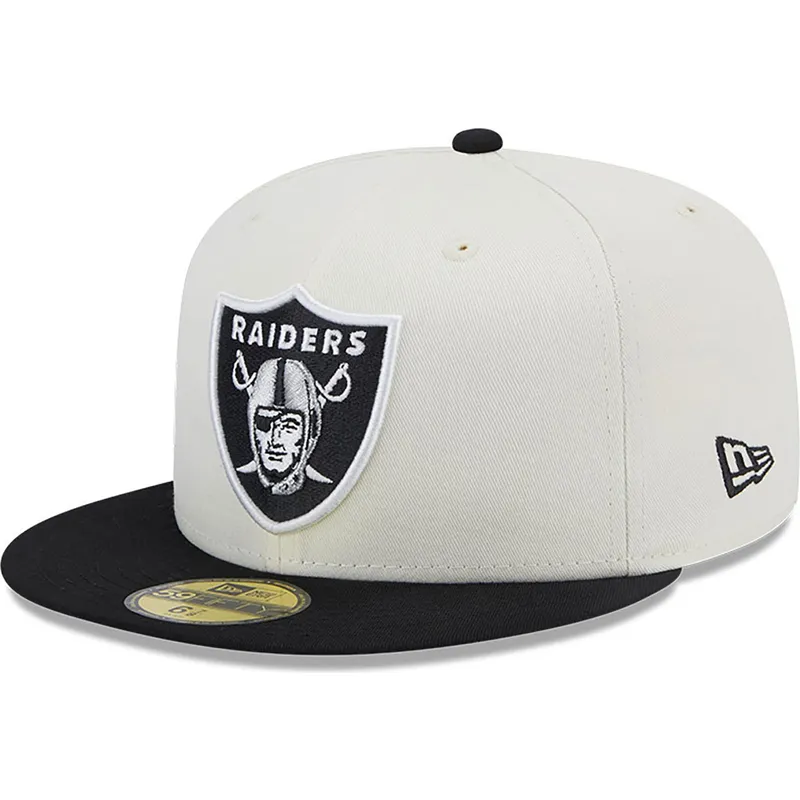 Cappello piatto bianco e nero aderente 59FIFTY Championships dei Las Vegas Raiders NFL di New Era