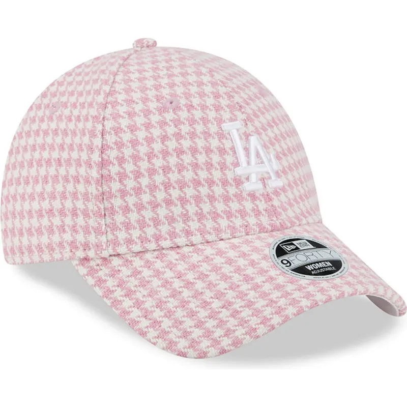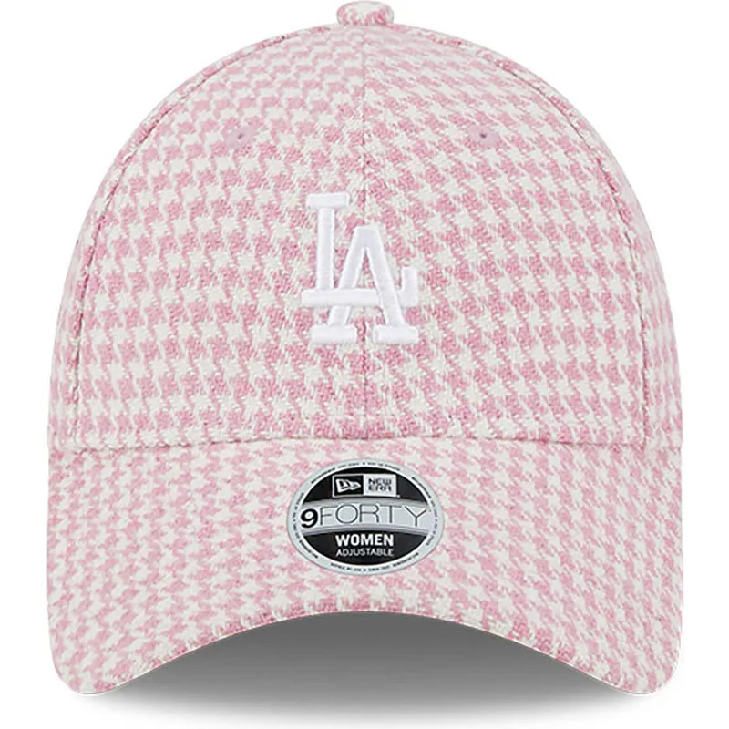 Il berretto curvo rosa e bianco regolabile 9FORTY Houndstooth da donna dei Los Angeles Dodgers MLB di New Era è l'accessorio perfetto per i fan della squadra di baseball. Pensato appositamente per la donna, questo berretto presenta un'elegante stampa pied de poule sui toni del rosa e del bianco per un tocco femminile e alla moda. La chiusura con cinturino regolabile consente di adattarsi a diverse dimensioni della testa, garantendo una vestibilità comoda e sicura in ogni momento.