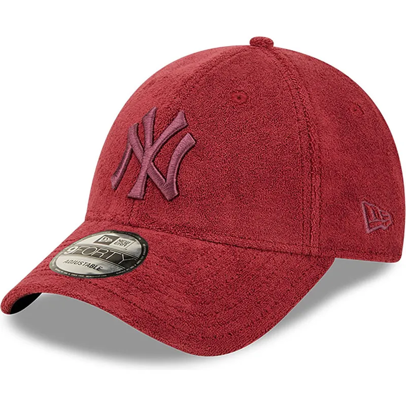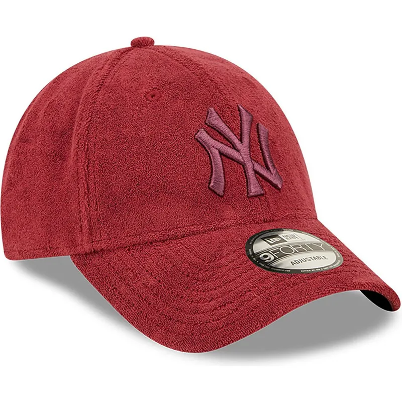 Cappellino curvo rosso regolabile con logo rosso 9FORTY Towelling dei New York Yankees MLB di New Era