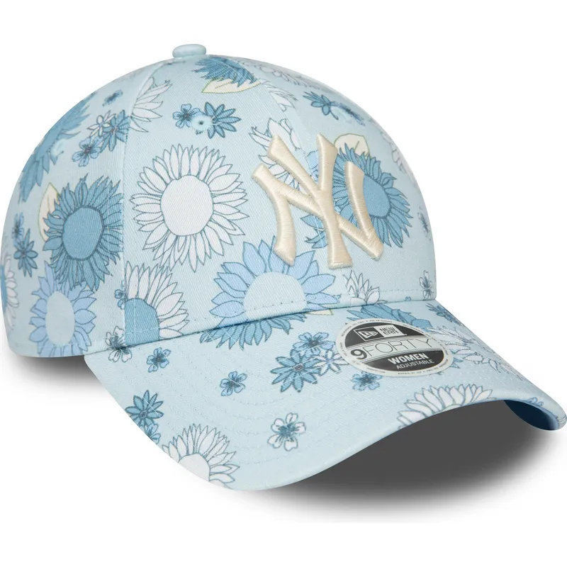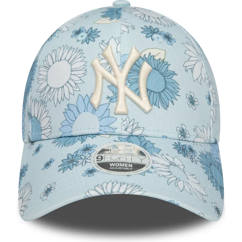 Cappellino curvo blu regolabile da donna 9FORTY Floral All Over Print dei New York Yankees MLB di New Era