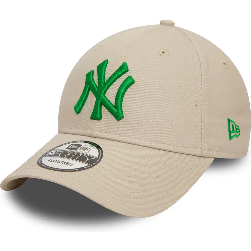 Il berretto curvo regolabile beige New Era dei New York Yankees MLB 9FORTY League Essential con logo verde è un pezzo senza tempo che non passerà mai di moda. Il suo design semplice ed elegante lo rende un accessorio versatile che può essere abbinato ad un'ampia varietà di outfit. Che si tratti di un look sportivo o casual, questo berretto si adatta ad ogni stile e situazione.