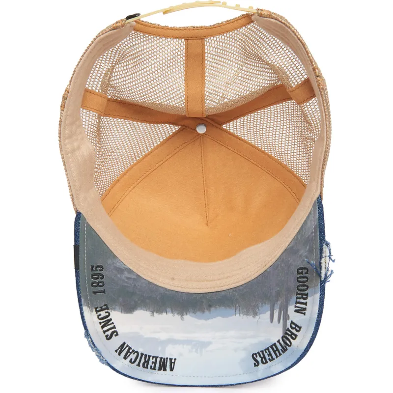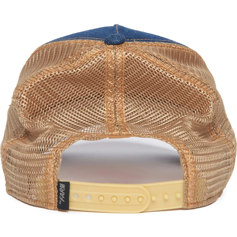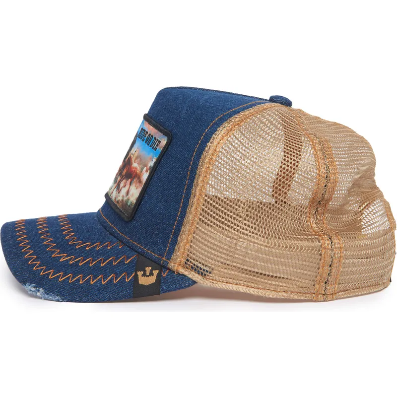 Cappellino trucker blu e beige cavallo Ride Or Die Modello N. 21D302D13 Rodeo The Farm di Goorin Bros.