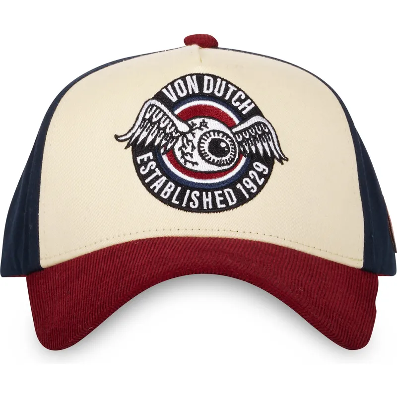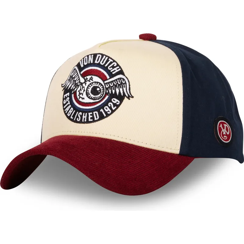 Snapback beige, blu e rosso con visiera curva VINT02 di Von Dutch