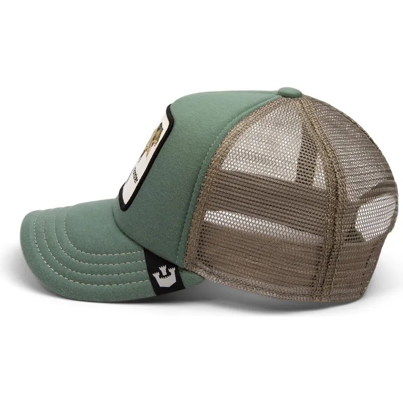 Il cappello trucker verde da bambino dinosauro T-Rex Monster Little Tyrant Extinct The Farm di Goorin Bros. è perfetto per i piccoli amanti dei dinosauri e della moda urbana. Con la sua divertente stampa T-Rex sul davanti, questo berretto è senza dubbio l'accessorio ideale per distinguersi in ogni occasione. Inoltre, il suo vivace colore verde aggiunge un tocco di freschezza e originalità a qualsiasi outfit.