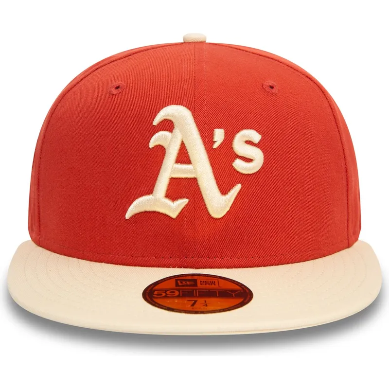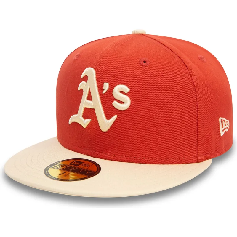 Cappello piatto arancione e beige aderente 59FIFTY Side Patch degli Oakland Athletics MLB di New Era