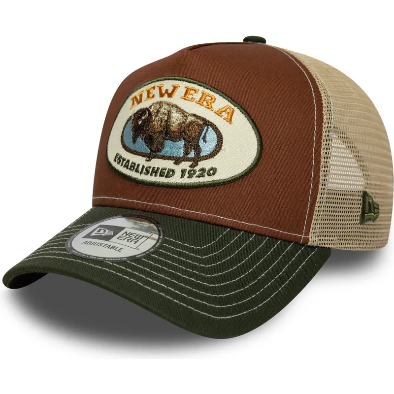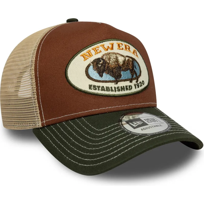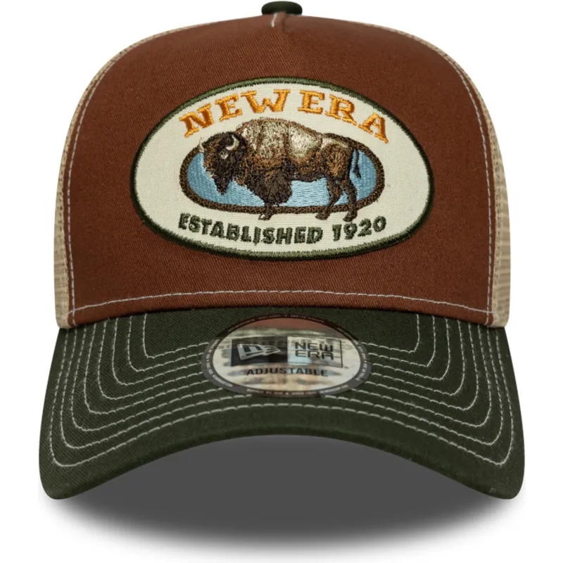 Cappellino trucker marrone e verde A Frame Animal Patch Buffalo di New Era