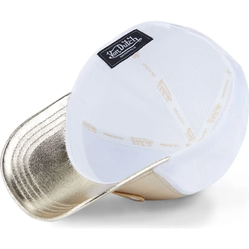 Il marchio Von Dutch ha mantenuto il suo prestigio sul mercato grazie a prodotti come questo cappellino da camionista REG G dorato, che riflettono qualità e autenticità. La struttura rigida della parte anteriore del cappellino ne garantisce il mantenimento della forma originale, mentre la parte posteriore in rete assicura una ventilazione costante, perfetta per prevenire l'accumulo di calore. Questa combinazione di materiali e design rende il cappellino non solo esteticamente accattivante, ma anche funzionale per l'uso quotidiano. L'attenzione ai dettagli in ogni cucitura e finitura sottolinea l'impegno di Von Dutch per l'eccellenza, posizionando questo cappellino come un elemento chiave per coloro che apprezzano sia l'estetica che la praticità.