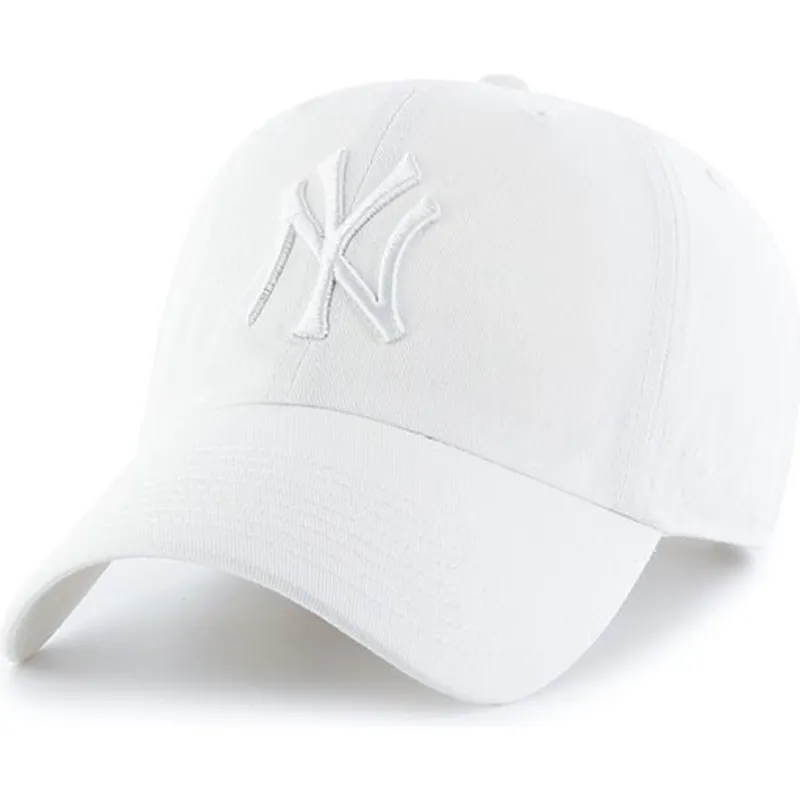 Cappellino curvo bianco con logo bianco dei New York Yankees MLB Clean Up di 47 Brand