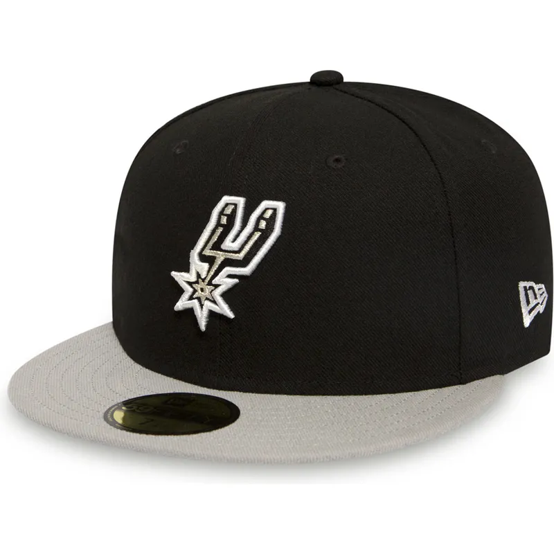 Cappello piatto nero e grigio aderente 59FIFTY dei San Antonio Spurs NBA di New Era