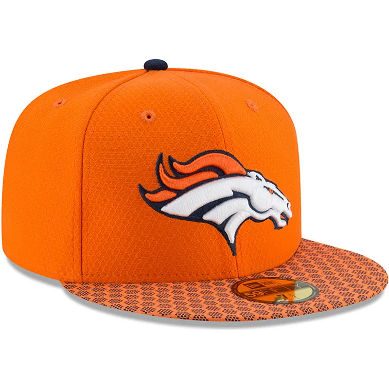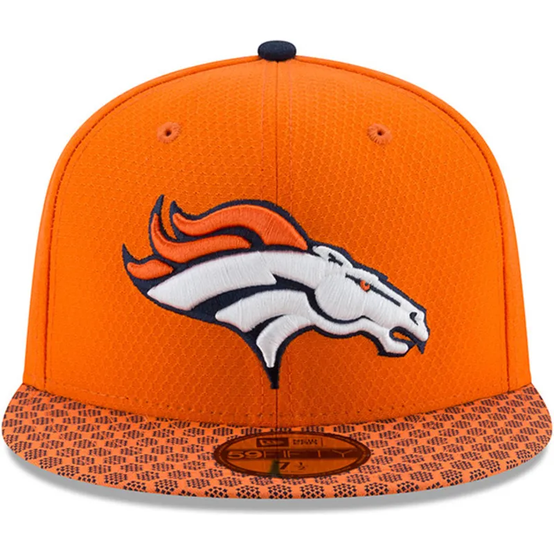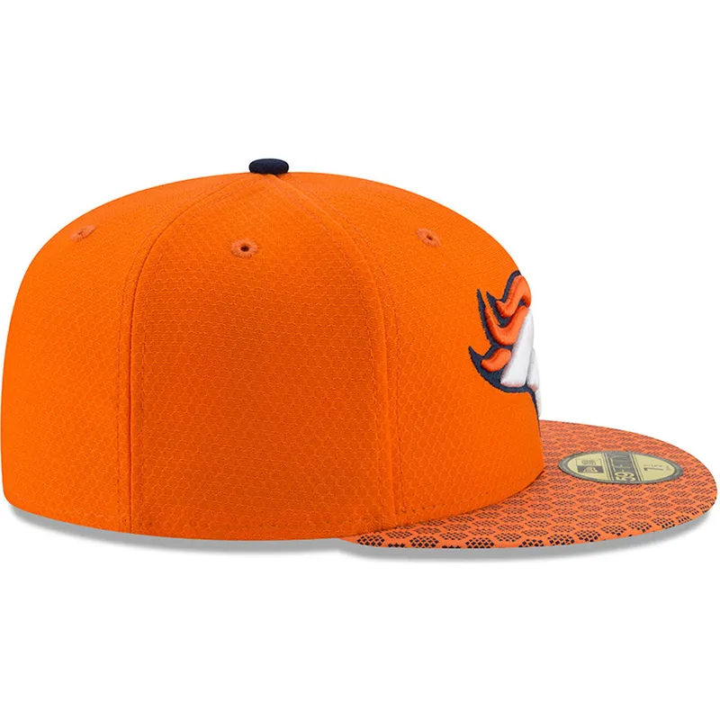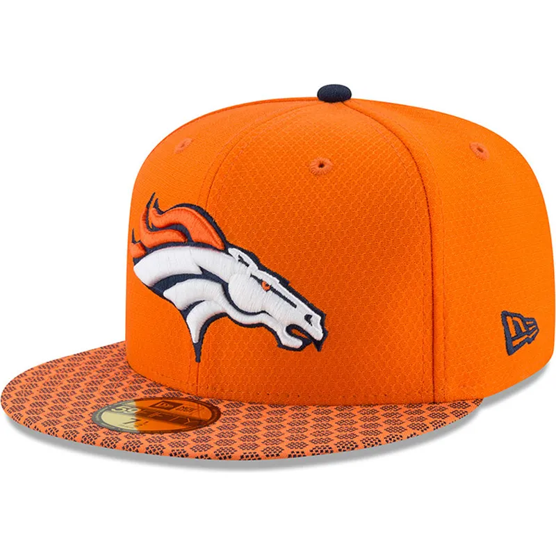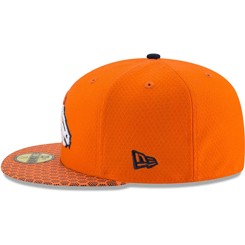 Cappello piatto arancione aderente 59FIFTY Sideline dei Denver Broncos NFL di New Era