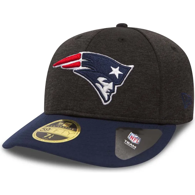 Cappellino curvo pietra e blu aderente 59FIFTY Low Profile Shadow Tech dei New England Patriots NFL di New Era