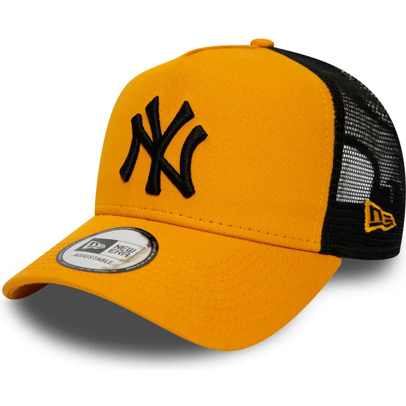 Cappellino trucker arancione con logo nero League Essential A Frame dei New York Yankees MLB di New Era