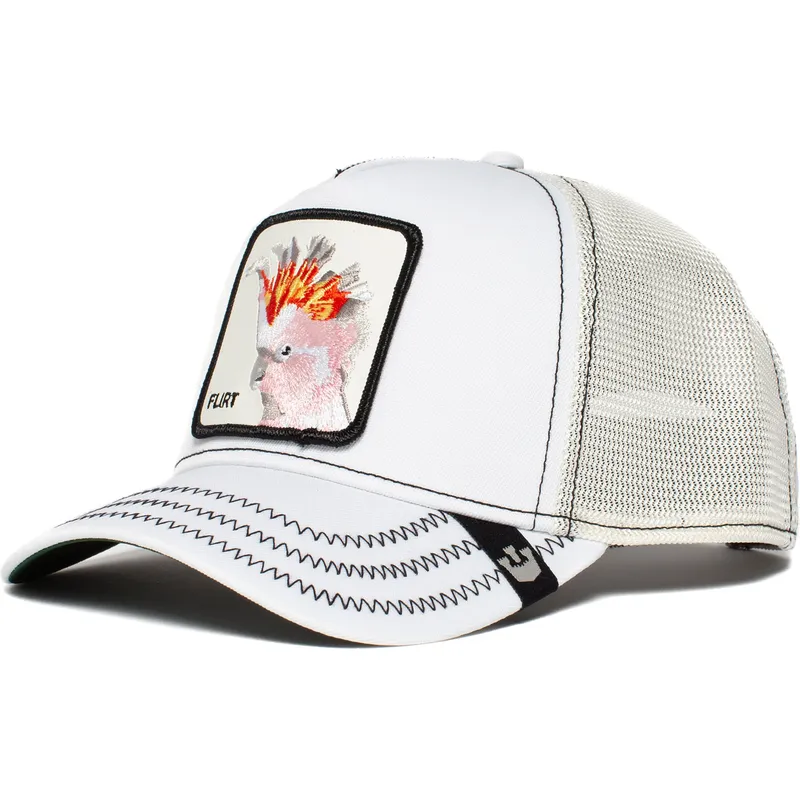Cappellino trucker bianco e grigio con pappagallo cacatua Big Flirt di Goorin Bros.