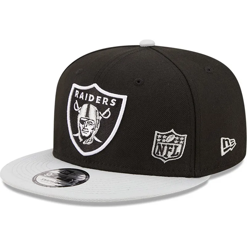 Cappello piatto nero e grigio snapback 9FIFTY Team Arch dei Las Vegas Raiders NFL di New Era