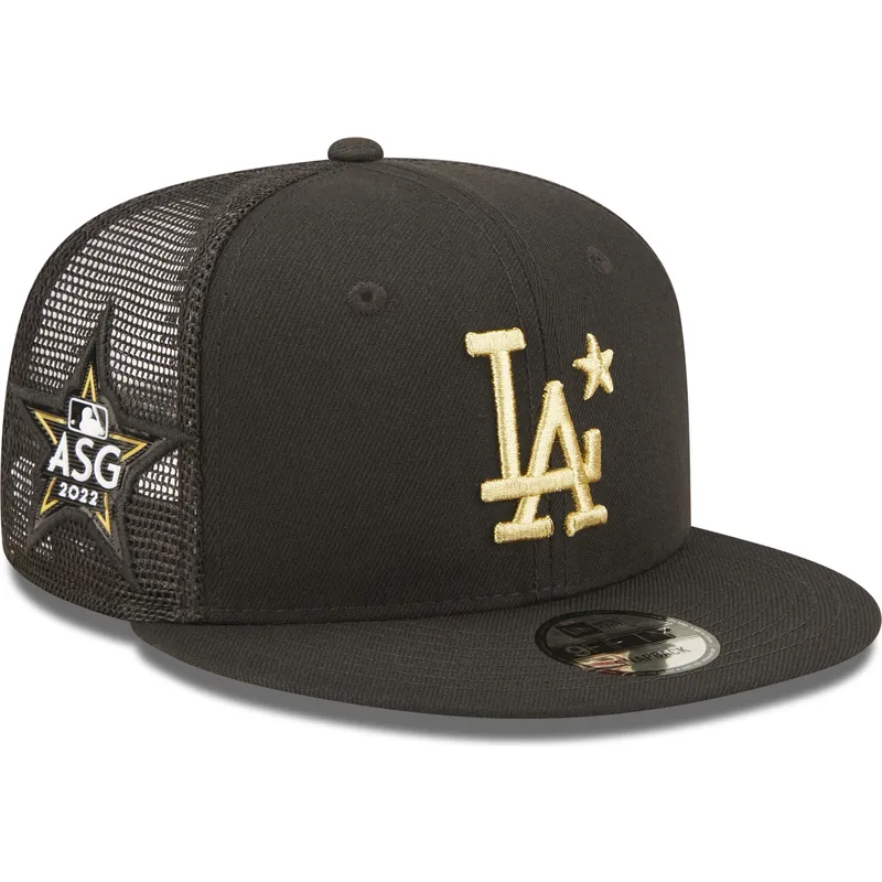 Cappellino trucker piatto nero con logo dorato 9FIFTY All Star Game Los Angeles Dodgers MLB di New Era
