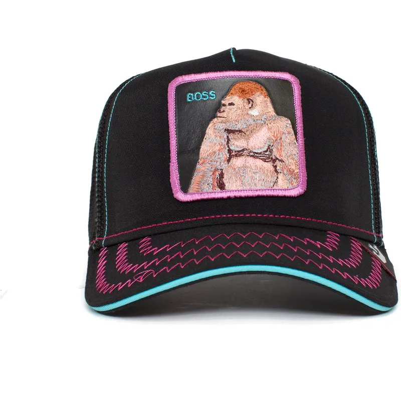 Cappello trucker nero e rosa gorilla Boss Barrel Boss The Farm di Goorin Bros.